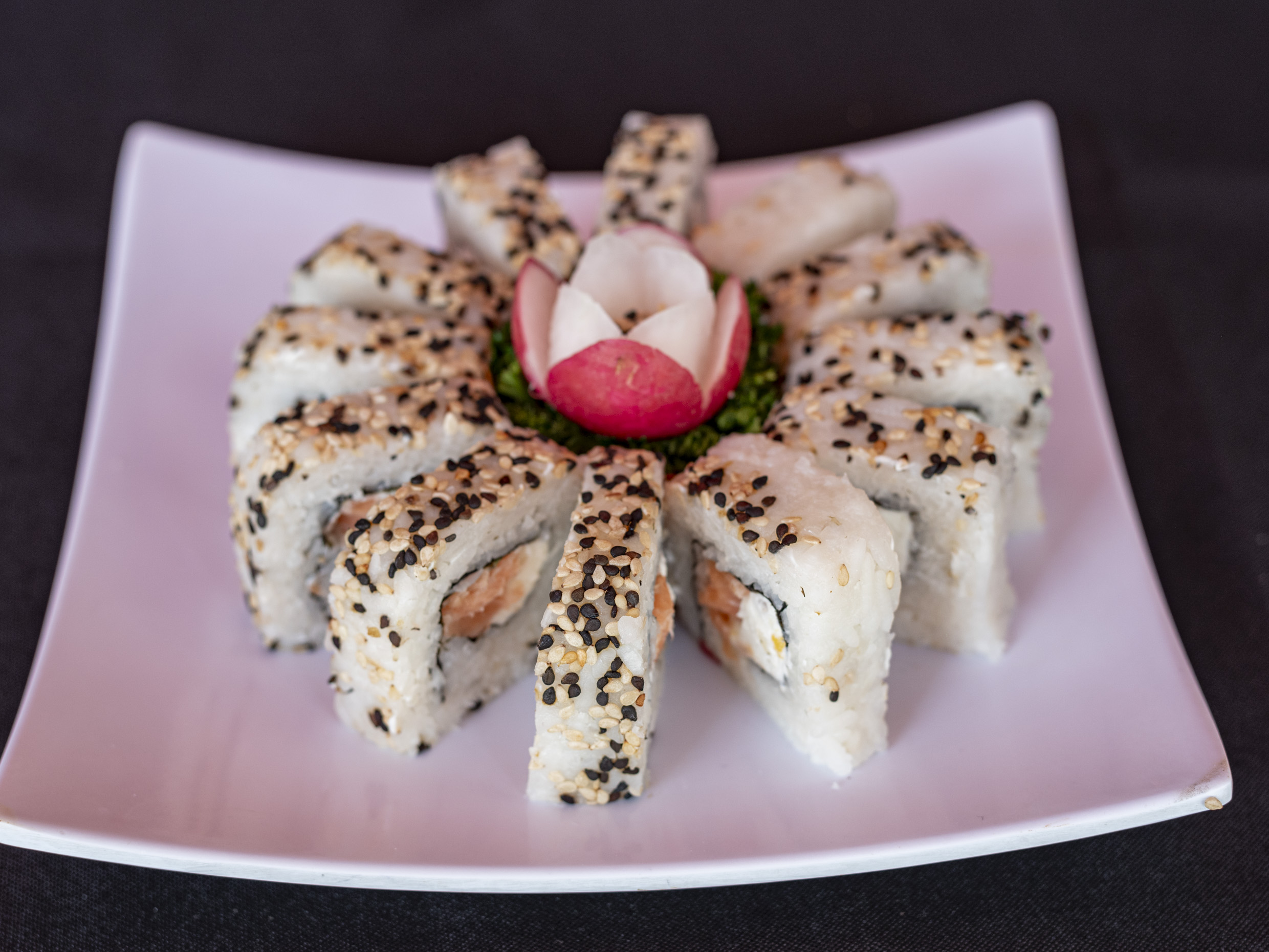 Queso Philadelphia y salmón cubierto con ajonjolí.