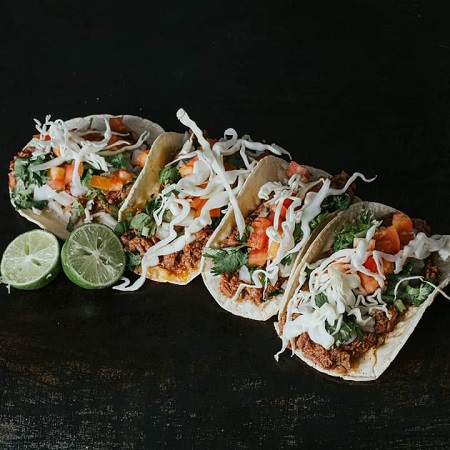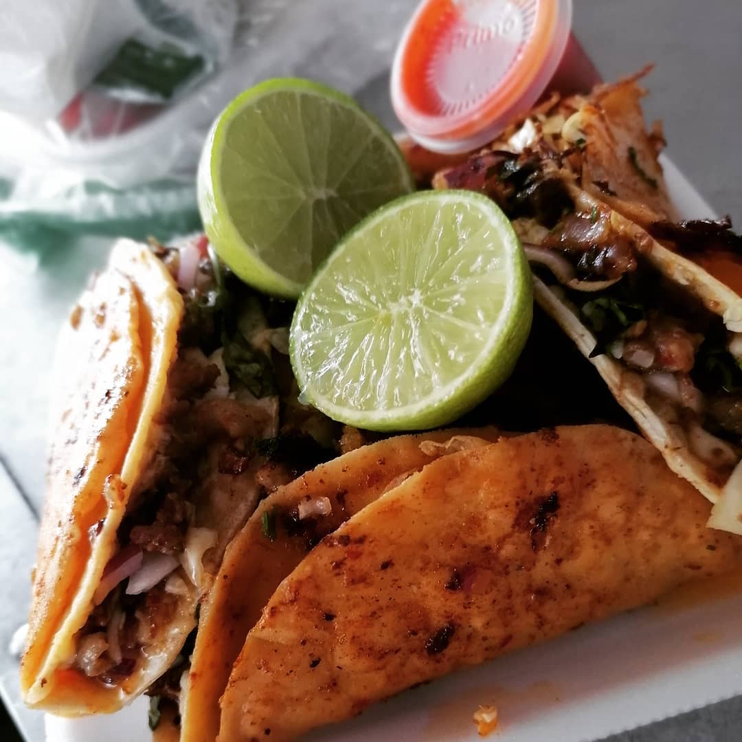 4 Tacos de tortilla de maíz grande, incluye consomé y salsa roja.