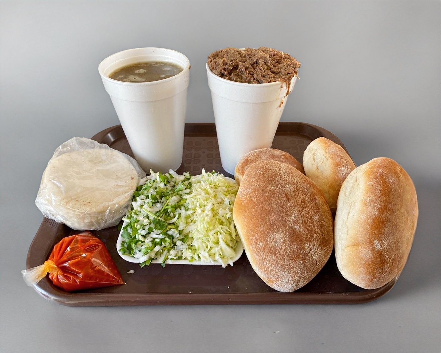 Barbacoa (1Lt) + Consome (1Lt) +Salsa, tortillas o 4 panes verdura.