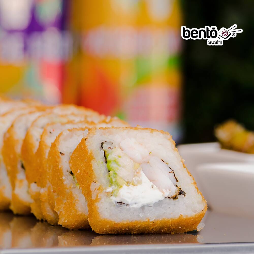 Philadelphia, aguacate, camarón empanizado, guarnicionados con una deliciosa ensalada: zanahoria, col y jicama, acompañada con soya y chipotle.