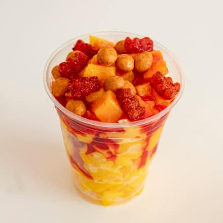 Fresas con crema de 20 oz con un jarabe y topping a elegir.