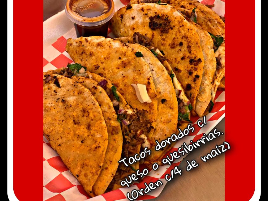 4 tacos de maíz con queso y consomé.