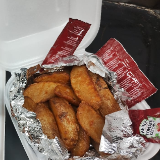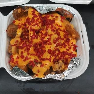 deliciosas papas fritas en gajo, acompañadas con queso para nachos