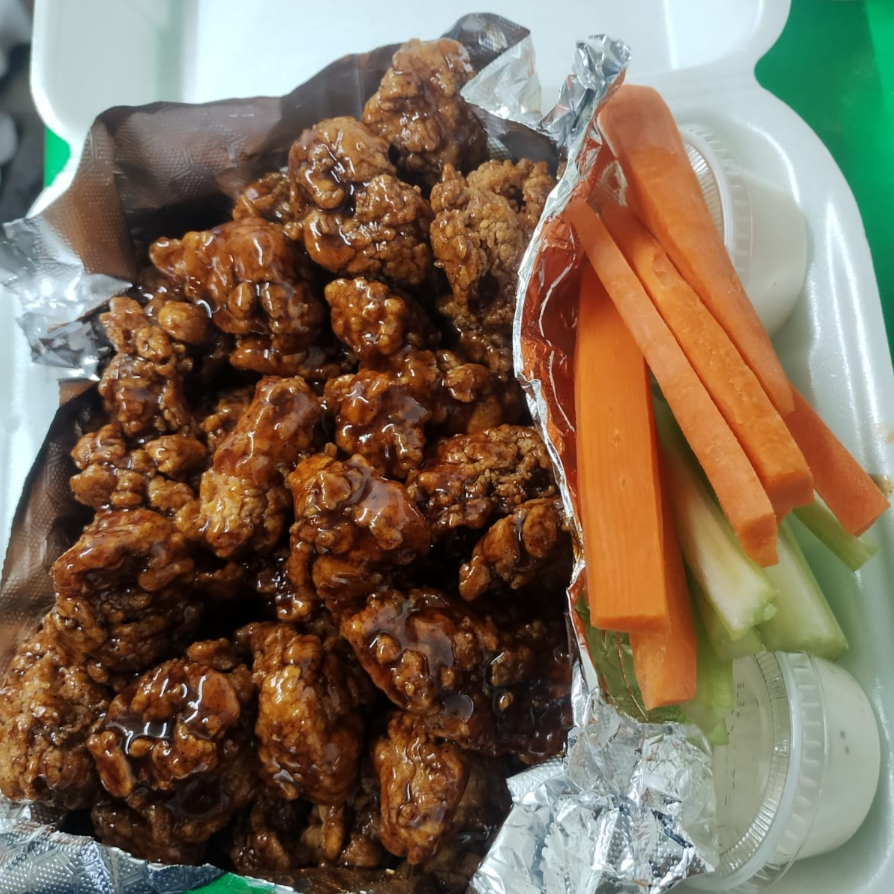500Gr. de Boneless hechos al momento, bañados hasta en 2 salsas, acompañados de aderezo ranch