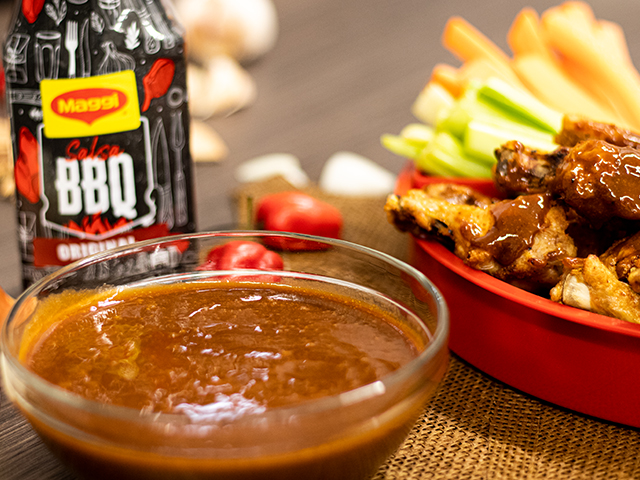 1 kg de boneless (peso en crudo) en 4 de tus salsas favoritas, apio y zanahoria, ranch