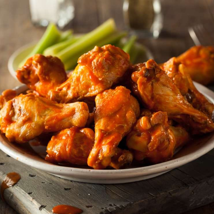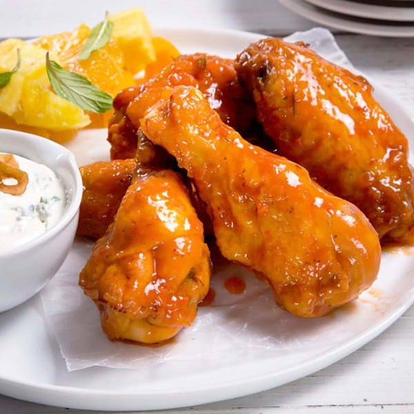1 kg de boneless (peso en crudo) en 4 de tus salsas favoritas, apio y zanahoria, ranch