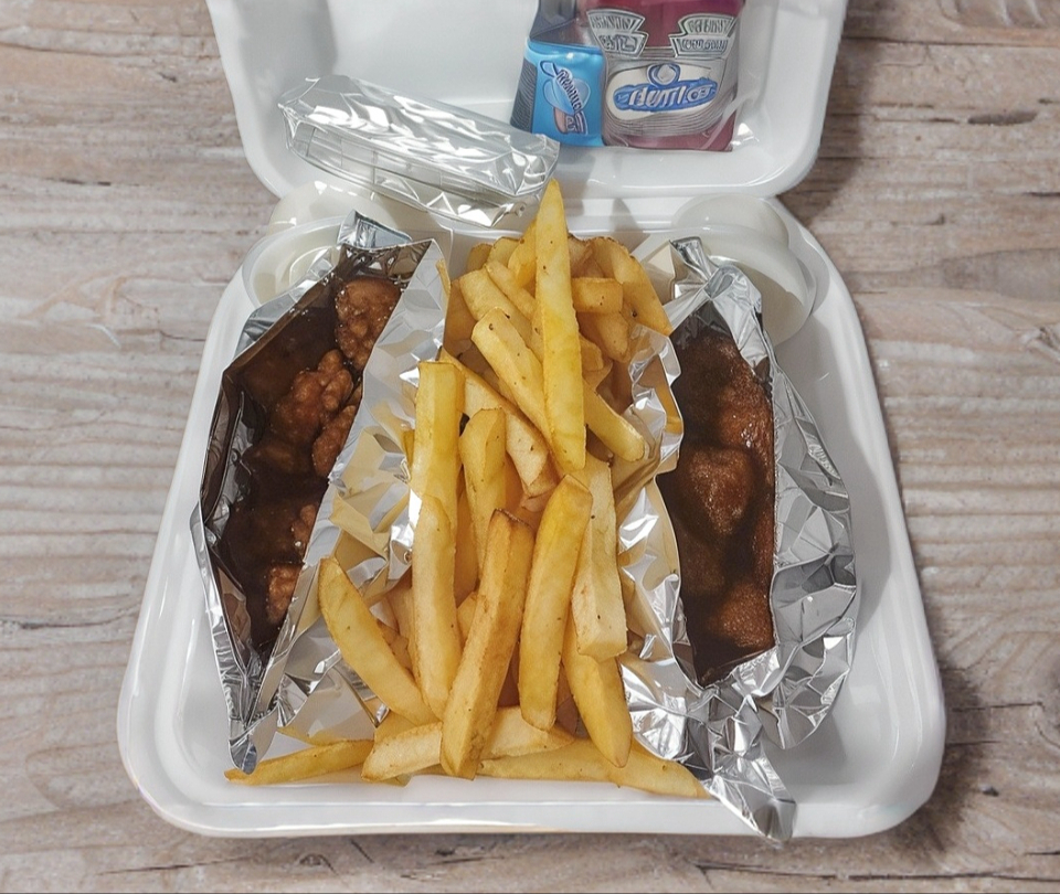 250gr de boneless en 1 salsa, bastones de verdura, ranch, catsup, mas un complemento a elegir.