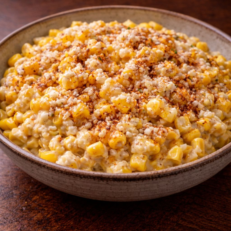Delicioso elote amarillo desgranado preparado. Porción individual..