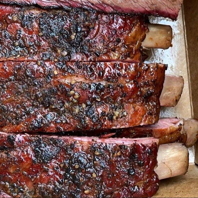 Costillas de cerdo ahumadas lentamente por mas de 8 horas, tiernas y jugosas. Porción individual. Incluye 1 salsa a elegir por porción.