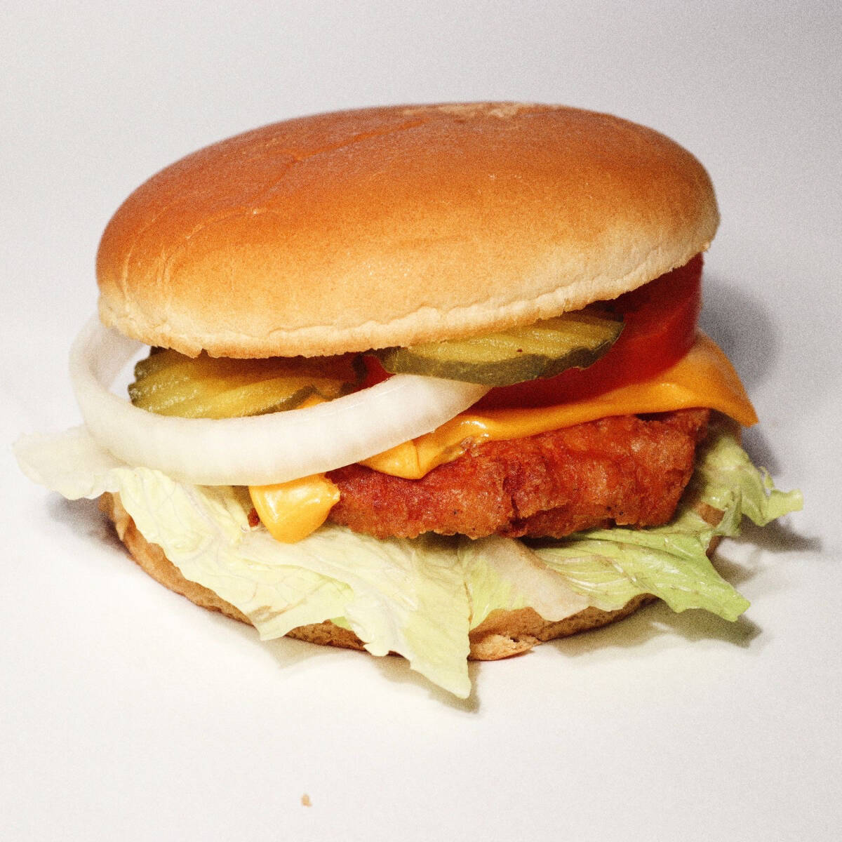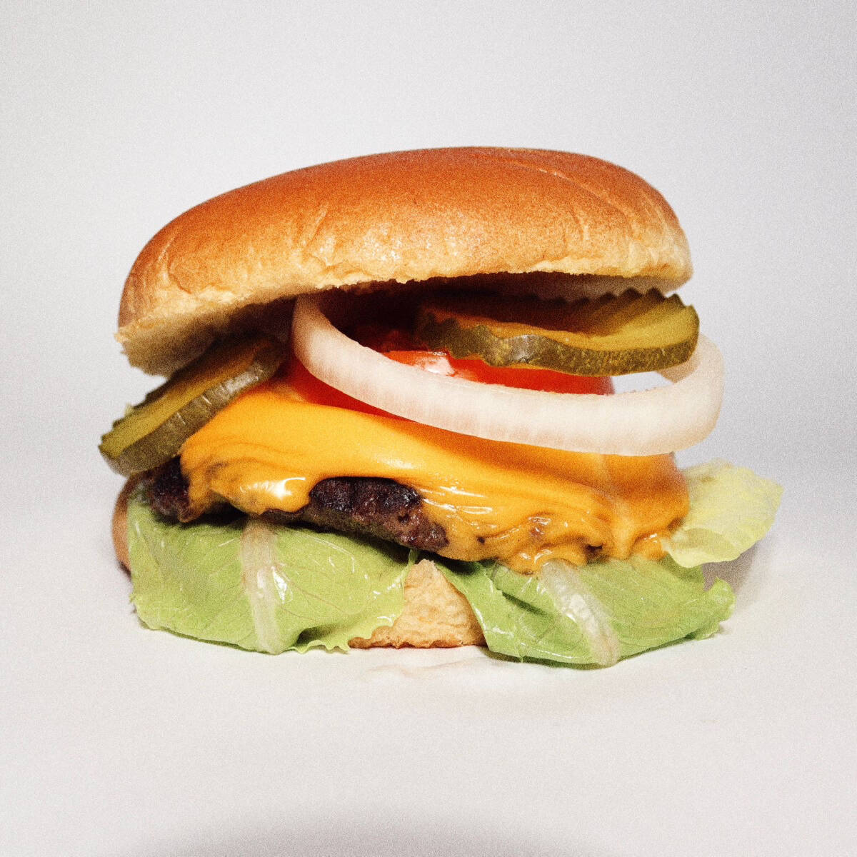 Carne de res, queso americano, lechuga, tomate, cebolla, pepinillos y aderezos.