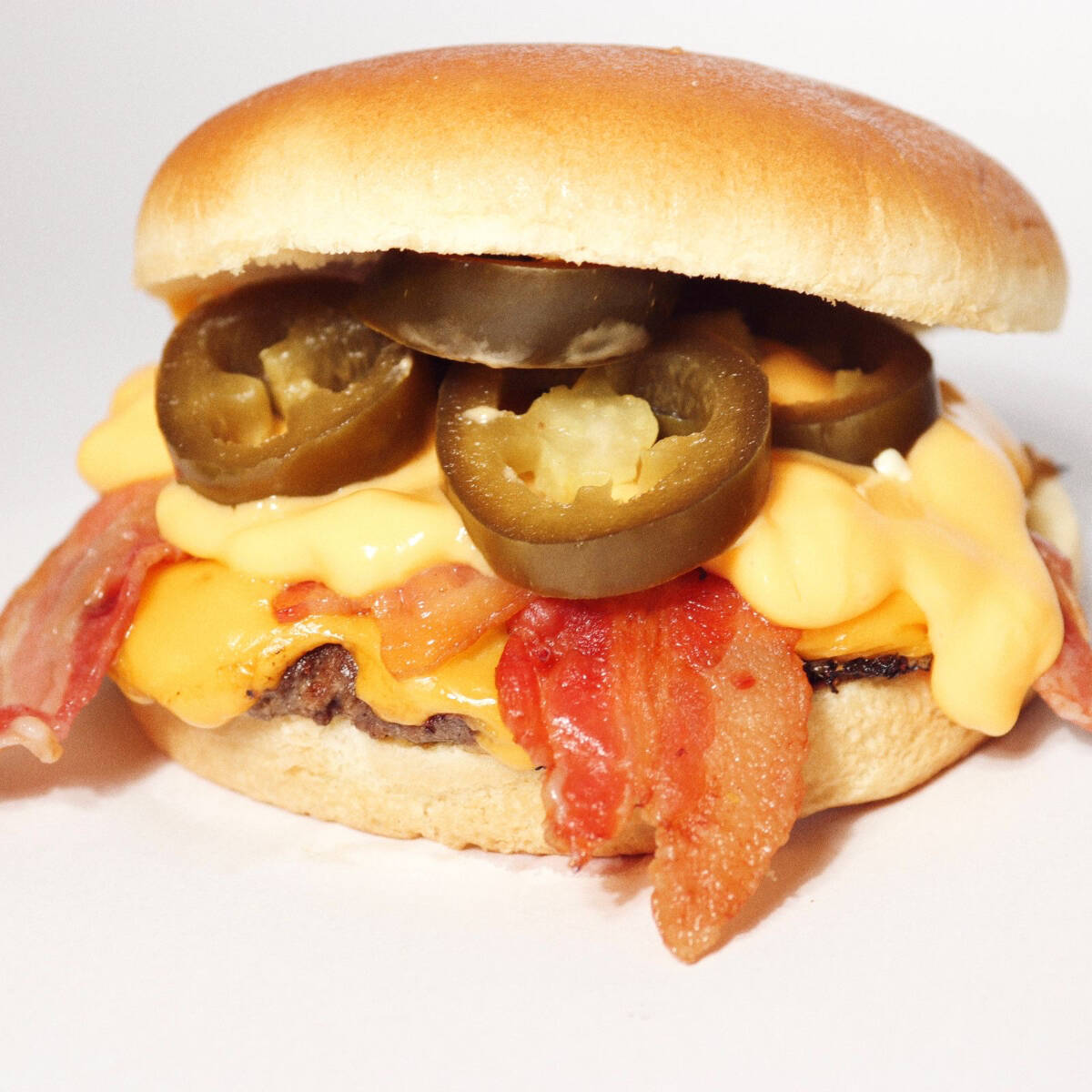 Carne de res, queso americano, tocino, queso cheddar y jalapeño