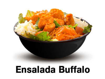 Mezcla de lechugas romana y orejona, queso, zanahoria, tocino, tomate y boneless bañados en buffalo.