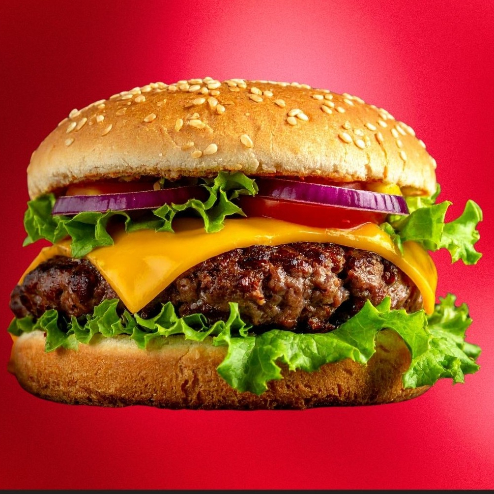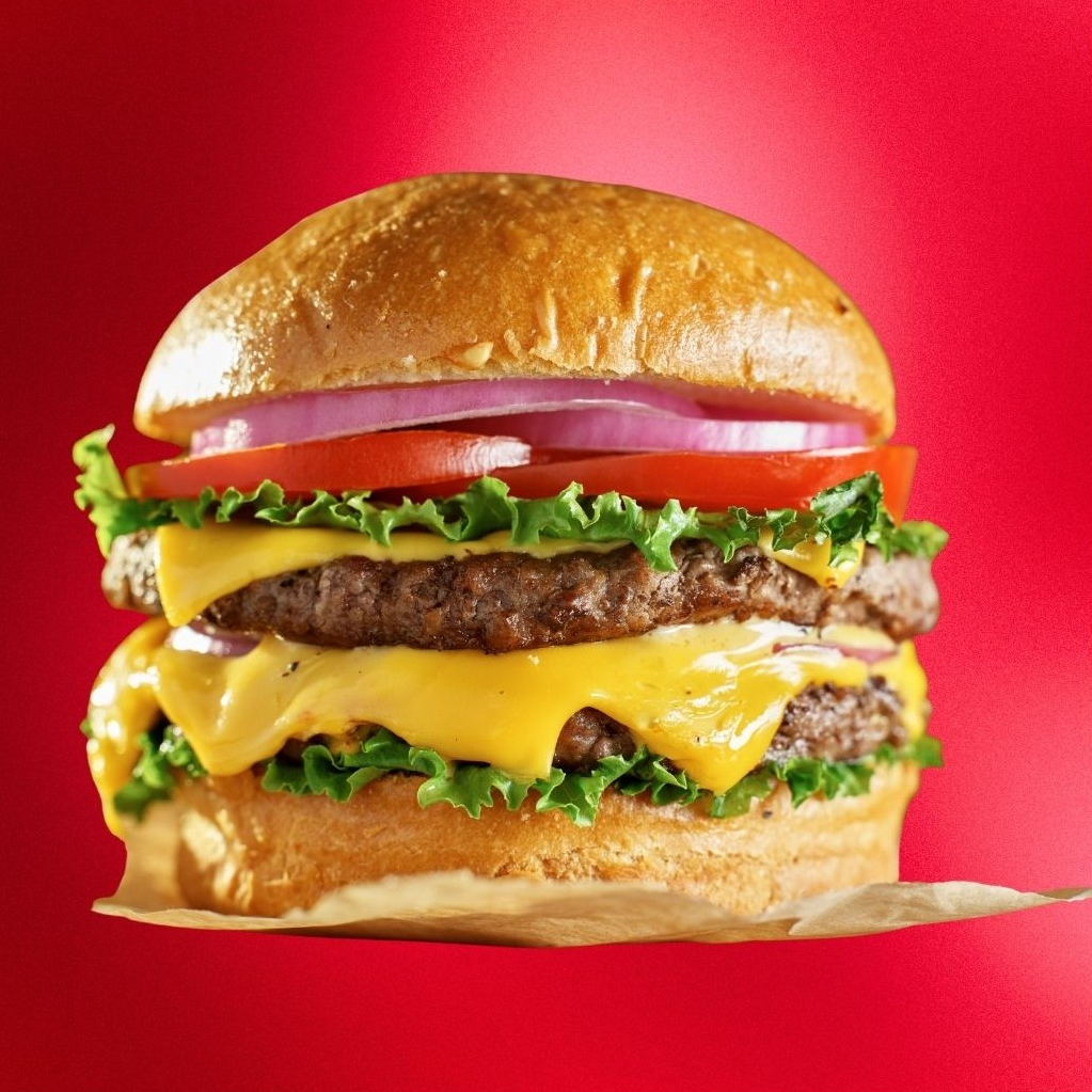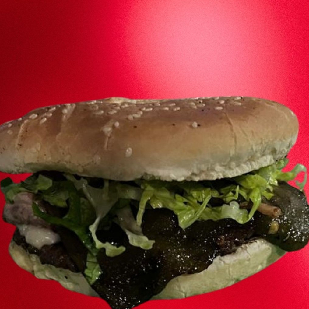 Doble Carne, Queso, Verdura (Lechuga, Tomate, Cebolla y Pepinillos).