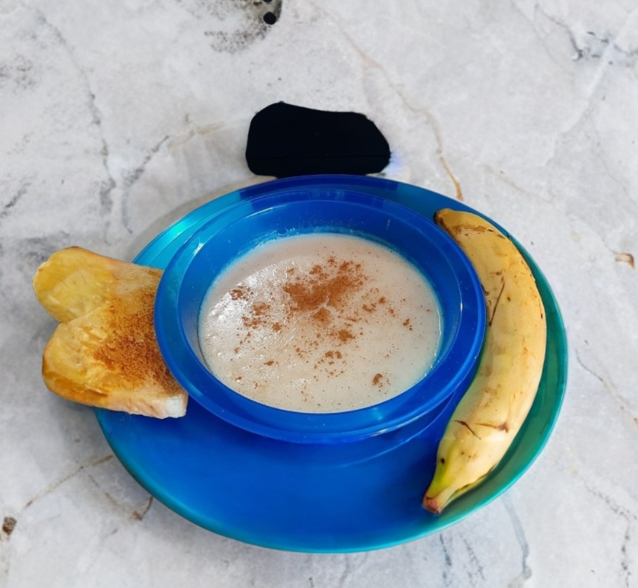 Avena con Plátano y Pan con Mantequilla