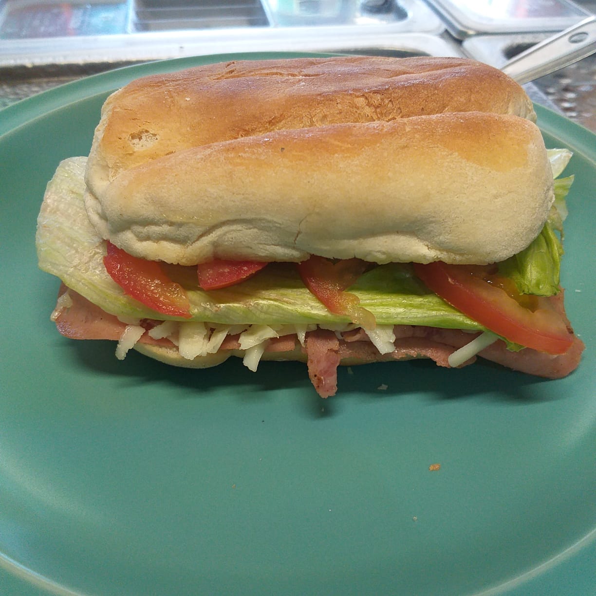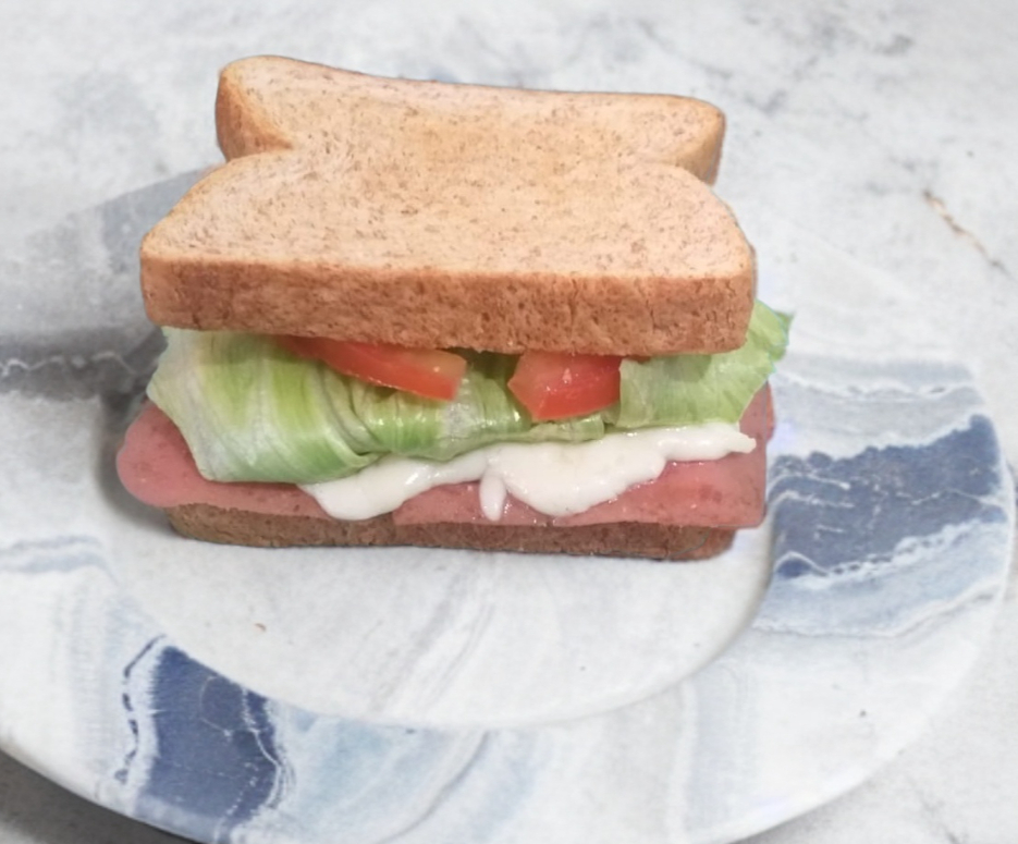 Pan integral, jamón de pavo, queso, lechuga y tomate.