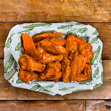 Orden de deliciosas alitas en crudo bañadas en salsa tamarindo hot, acompañadas de aderezo salad dip.