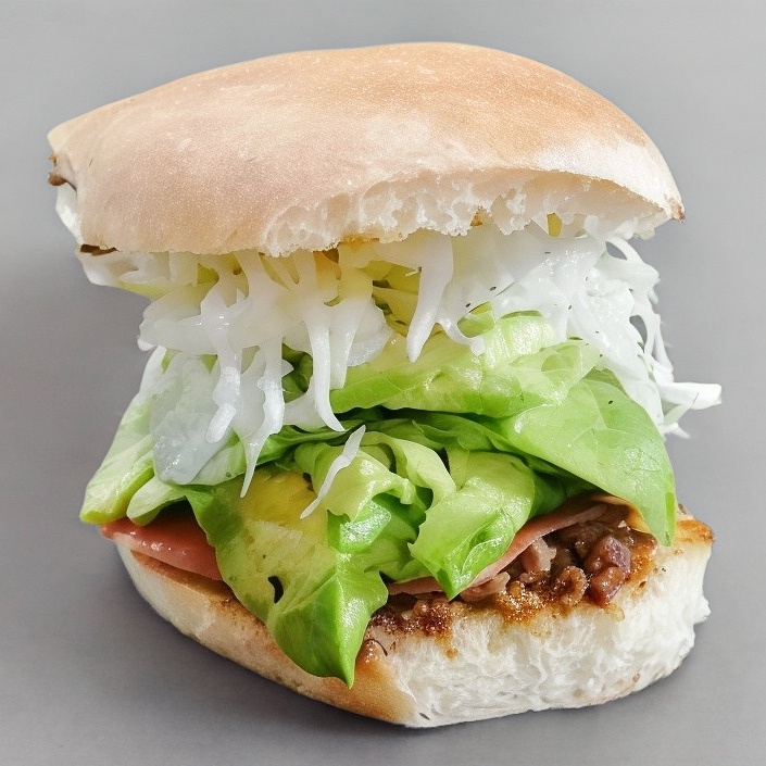 Carne, queso, jamón, lomo, aguacate, verduras y aderezos.