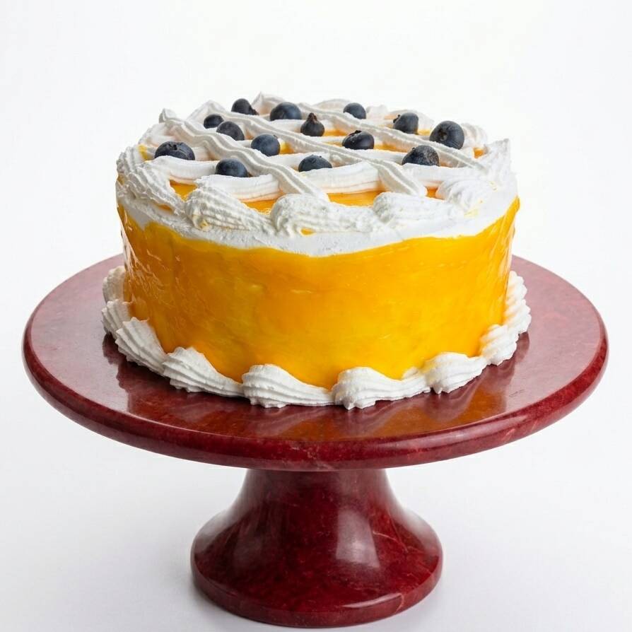 Riquisimo pastel en Pan de vainilla bañado en tres leches, relleno de mousse de mango, salsa de mango. Cubierto con crema , terminado con salsa de mango y fruta de temporada.