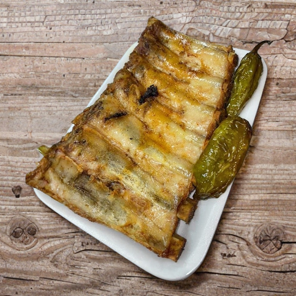 Chamorro frito acompañado con salsa de árbol y tortillas (5). (Porción personal)