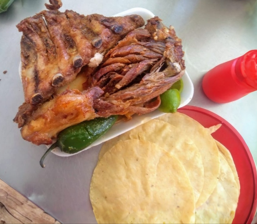 1/2 Carnitas de cerdo hechas en un estilo unico acompañados de salsa,verduras y 10 tortillas para 3 persona