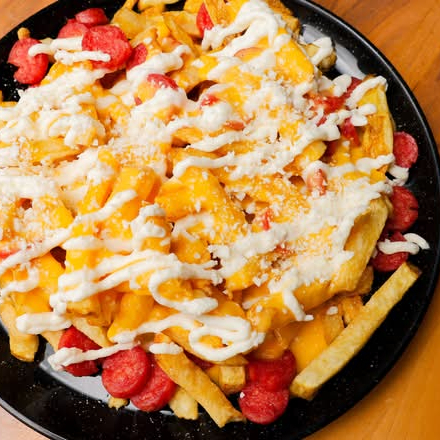 Papas crujientes más salchicha dorada, igual combo perfecto.