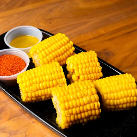 5 Elotes amarillos, acompañados de mantequilla y chile limón.