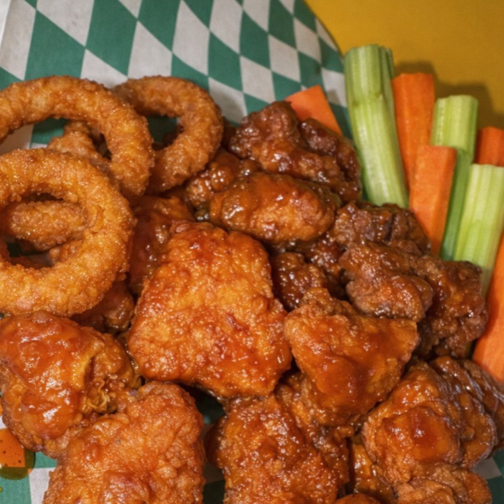 500grs de boneless 2 salsas a elegir. Incluye ranch y verduras