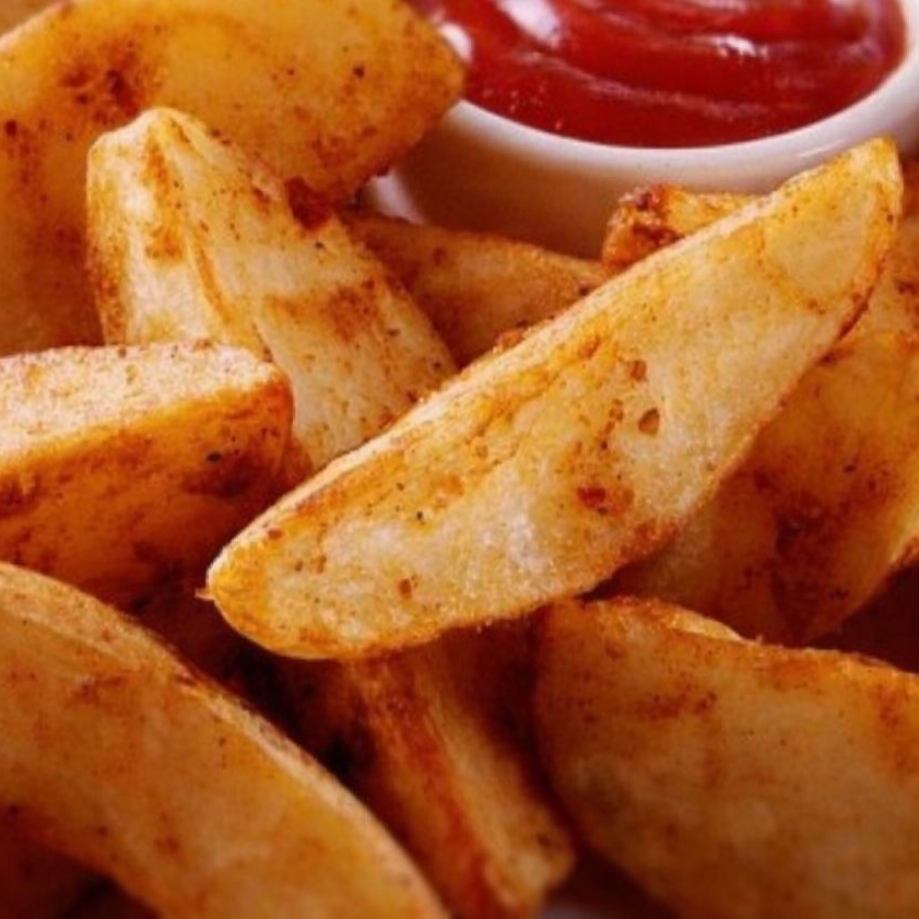 Papas gajo crujientes acompañadas de catsup