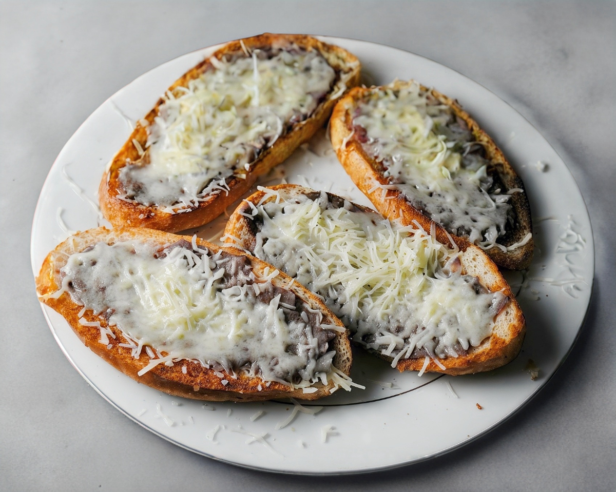 2 Mitades de telera con mantequilla, frijolitos y queso.