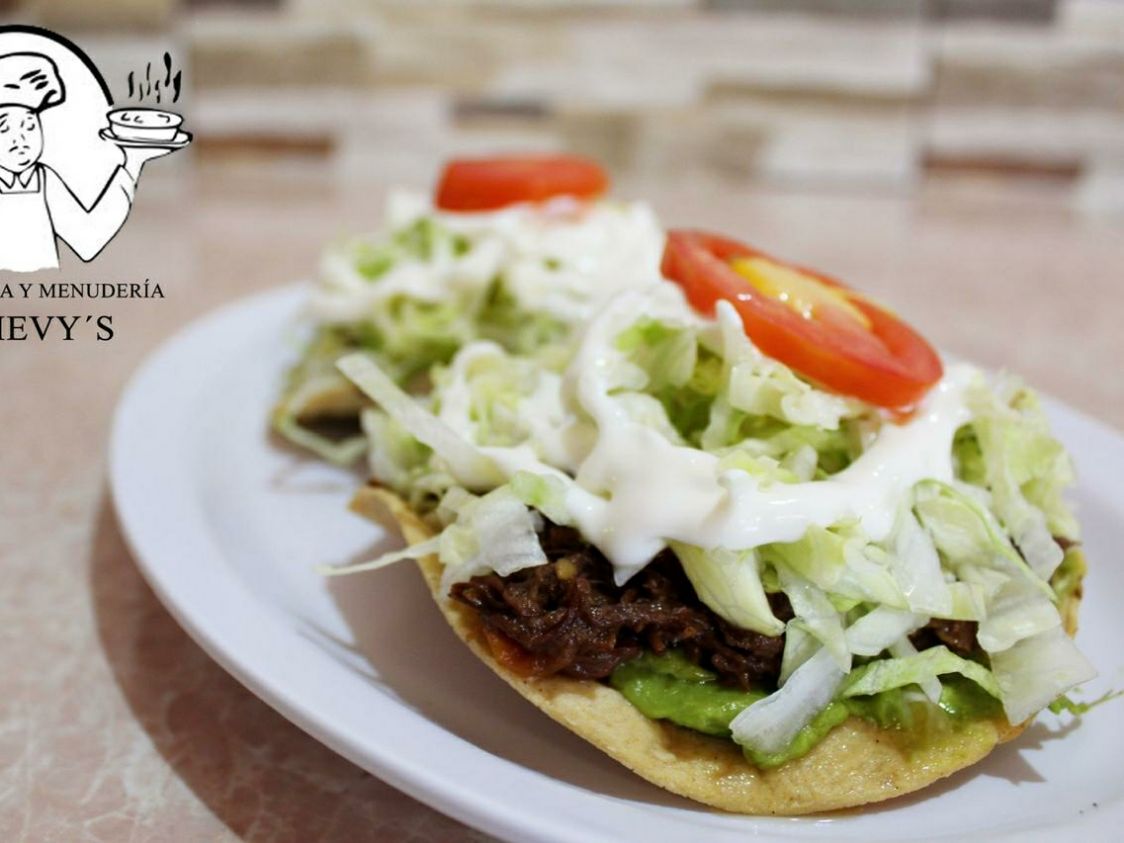 2 Piezas, carne deshebrada, base de guacamole, lechuga, tomate y crema.