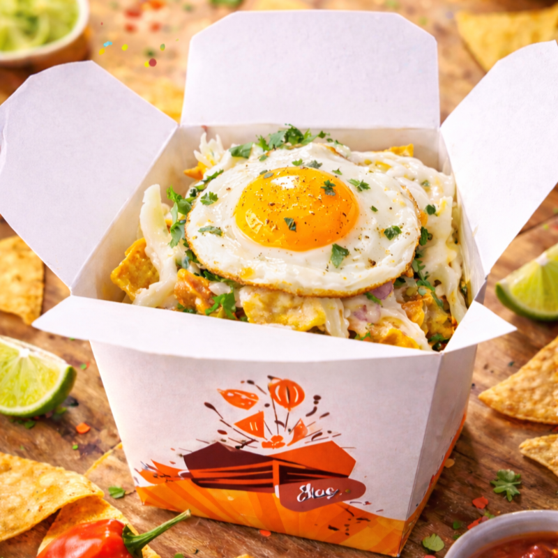 Disfruta de tus chilaquiles box favoritos, acompañados de un huevo estrellado