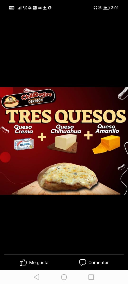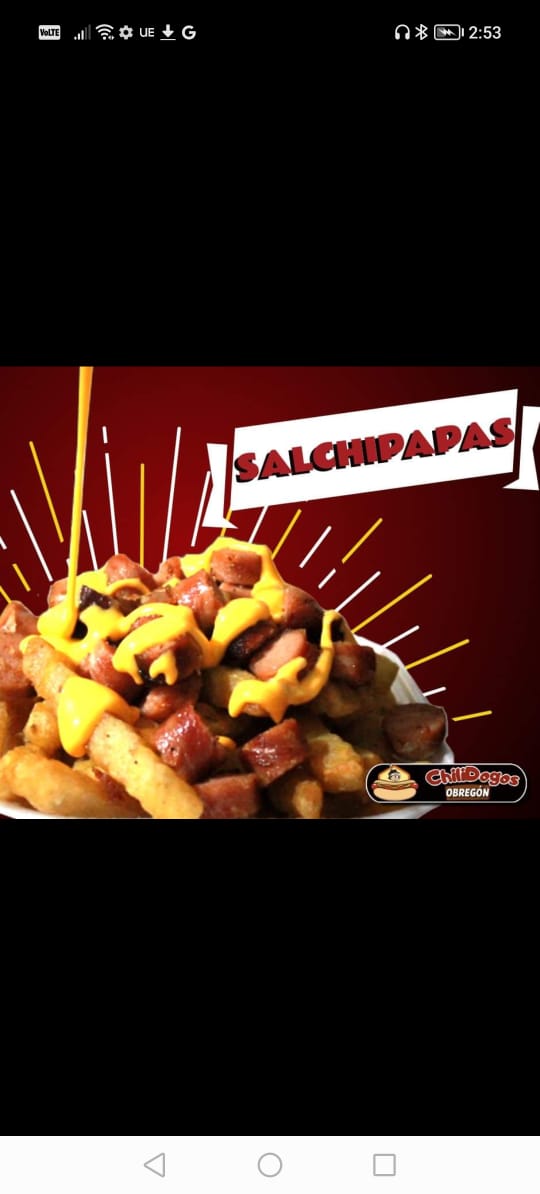 Una orden de papas 400gr, 3 salchichas Rosarito picadas bañado con queso Chihuahua gratinado, combinada con salsita de pizza y chorizo frito.