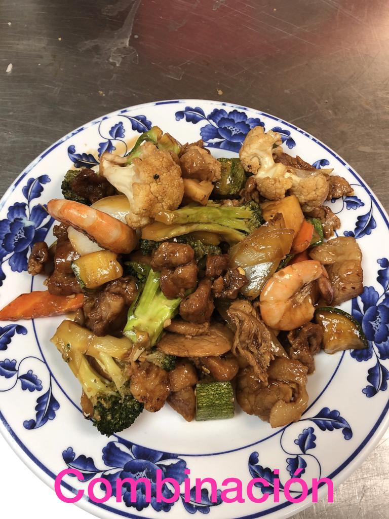 ARROZ O SPAGUETTI(180 gramos )proteina (400 ml aprox) 2 GUISOS EN UN PLATO Y 2 GUISOS EN OTRO. salsa agridulce, salsa de soya y jalapeño