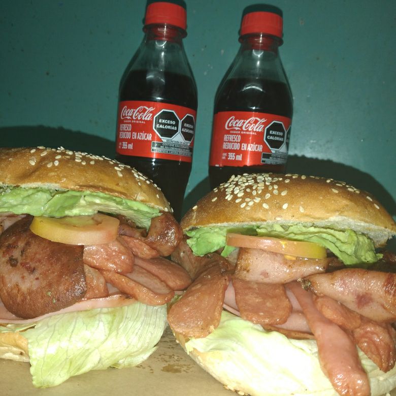 Por si tienes mucha hambre, te recomendamos la hamburguesa más grande del menú con 140 gr. de carne preparada tocino dorado, jamón queso blanco, 2 salchichas de hot dog, aguacate, tomate, lechuga, aderezo y una porción de carne de pierna sazonada con mantequilla y salsa de soya.