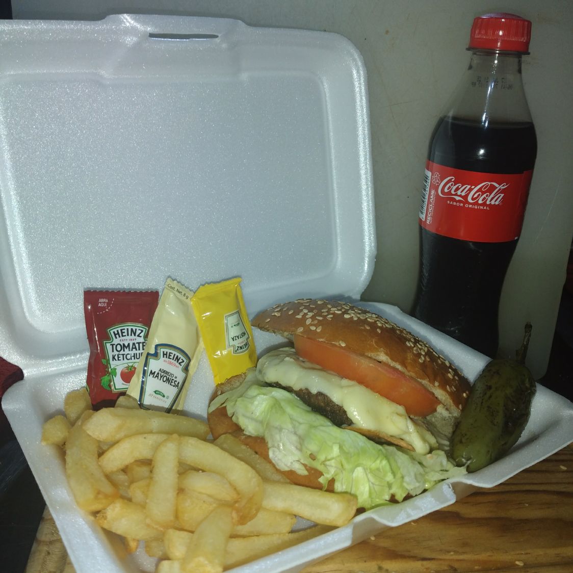 Refresco Coca Cola*1 + Hamburguesa Sencilla*1 + Porcion Individual de Papas Francesas 100 Gr*1