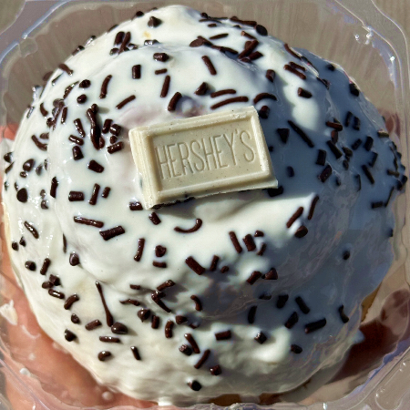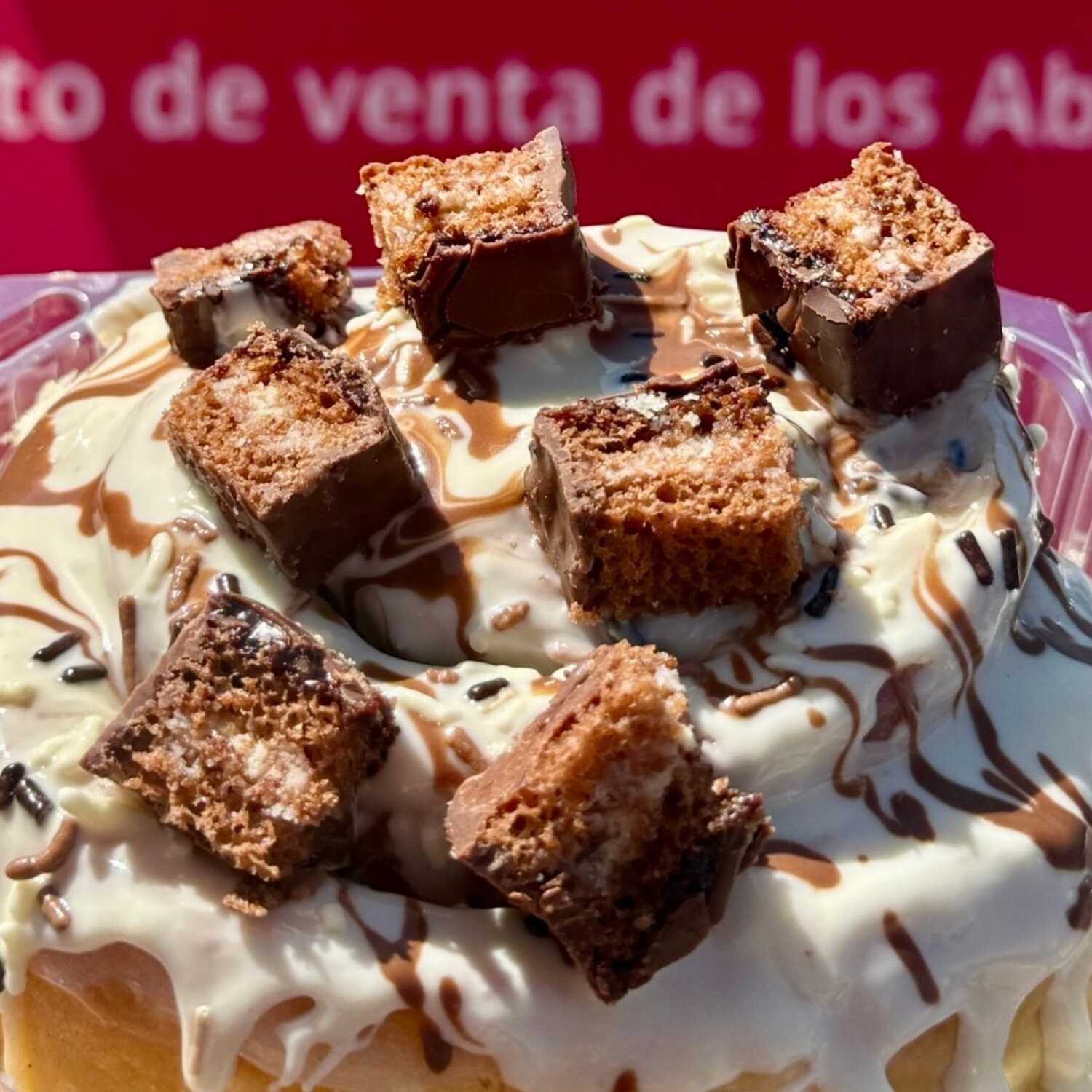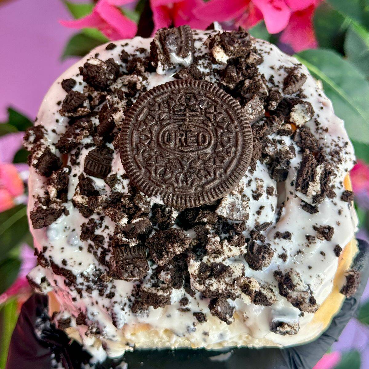 Roll individual con glaseado, base de chocolate blanco y galleta oreo