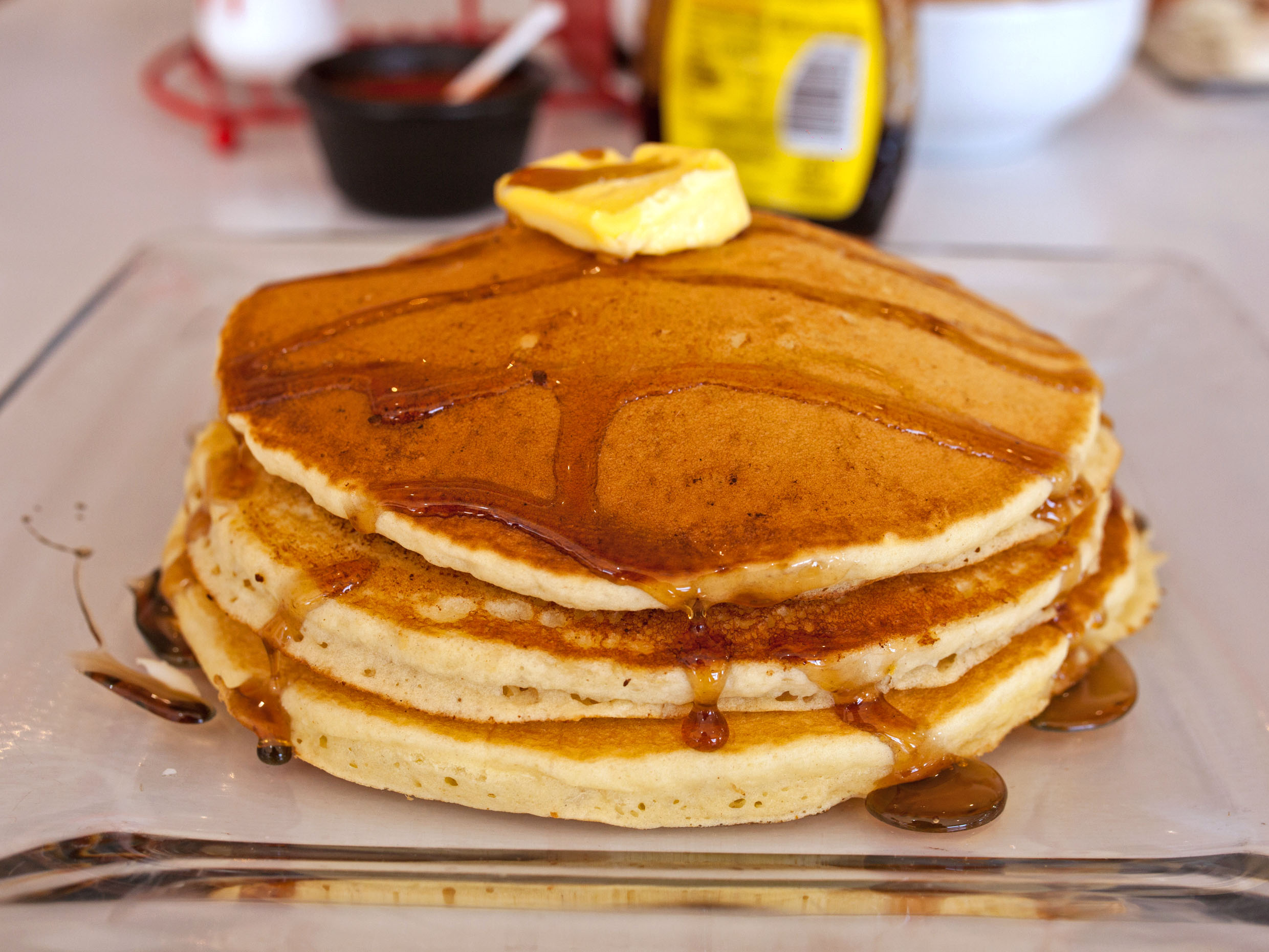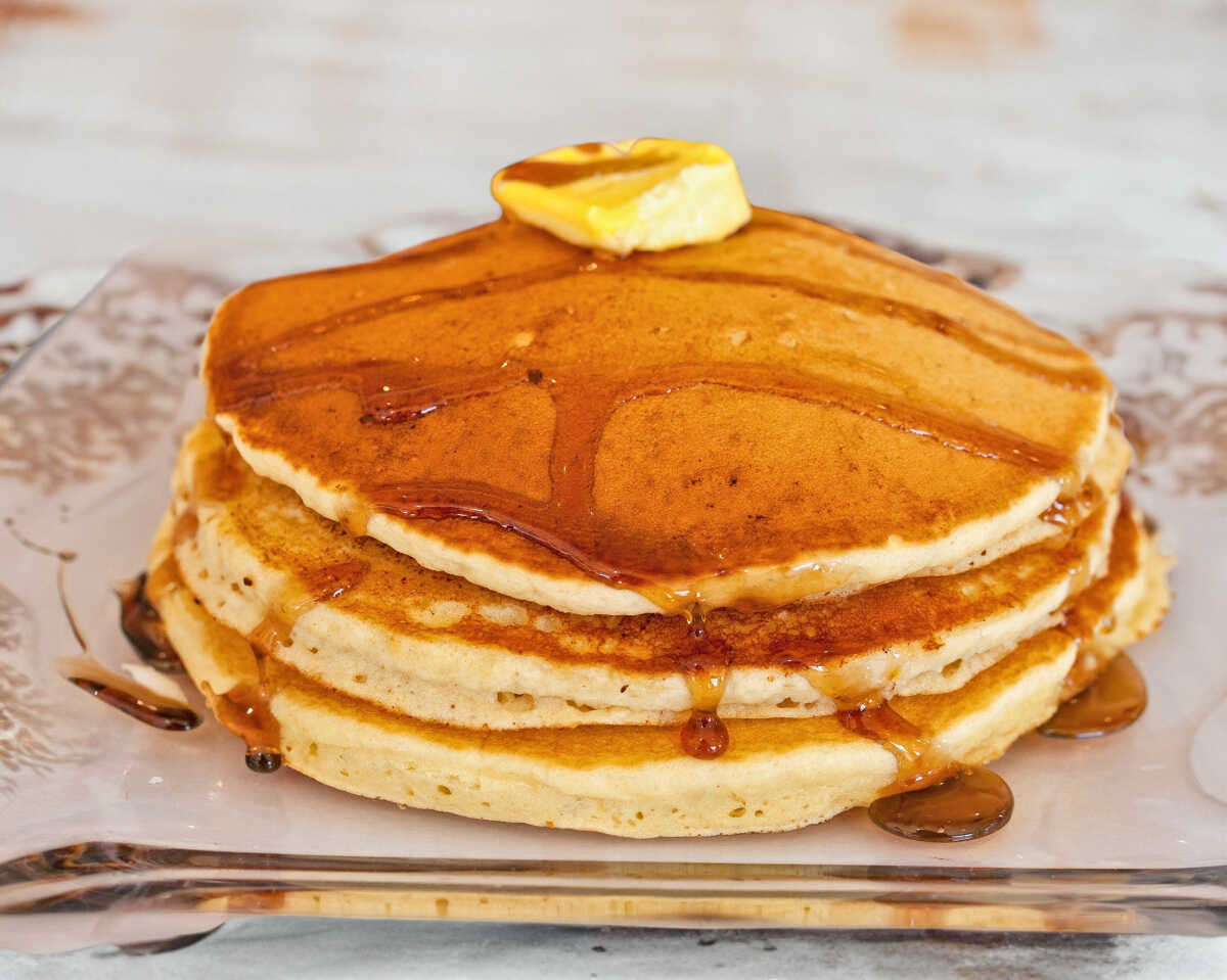 Un riquísimo Hot Cakes con su miel y mantequilla.