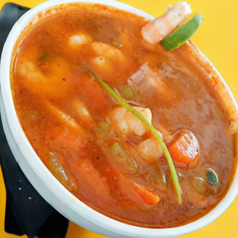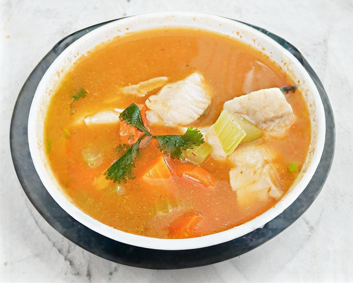 DELICIOSO CALDO DE FILETE, CAMARÓN Y PULPO CON VERDURAS.