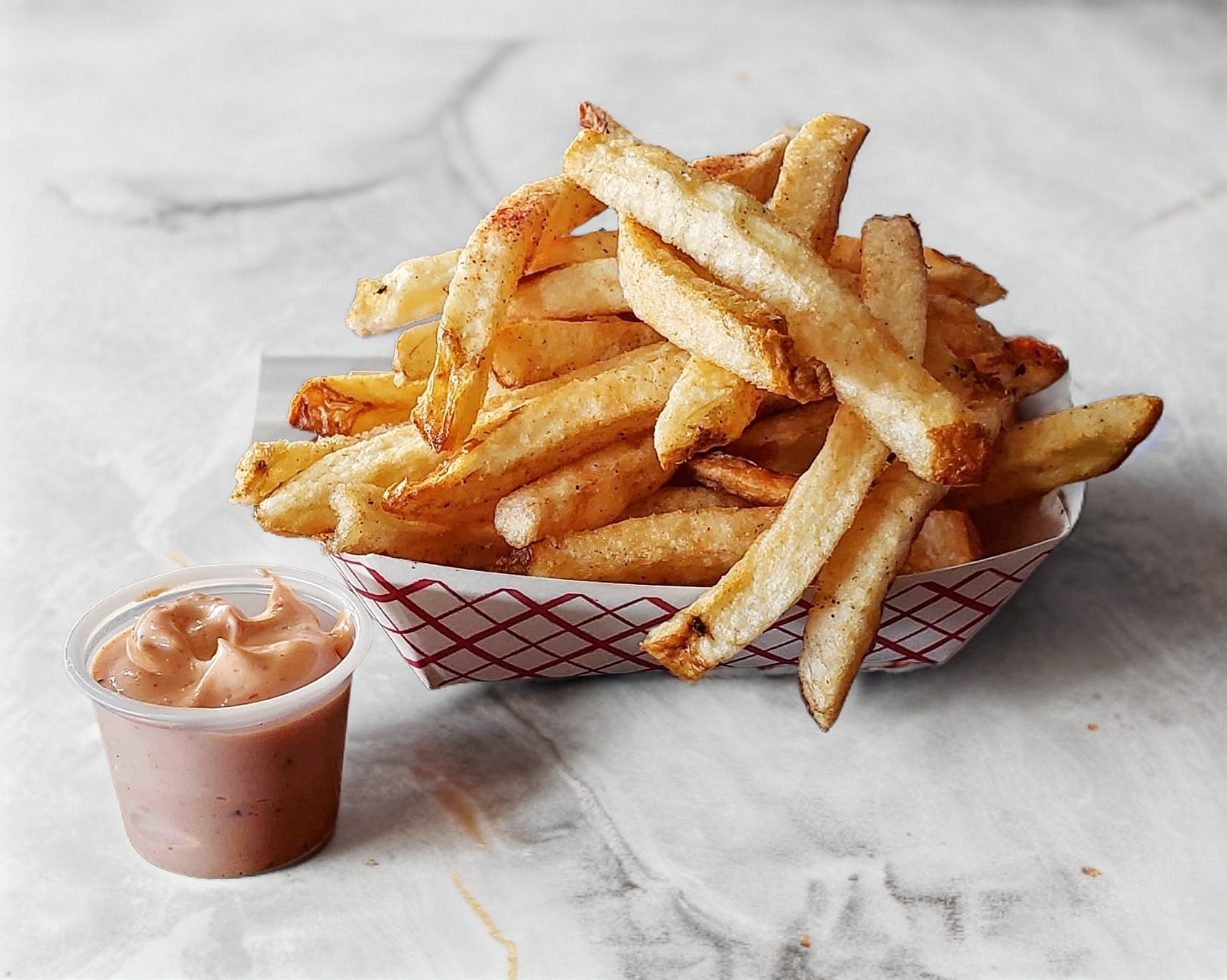 Side de papas a la francesa, naturales y sazonadas. Cortadas al día para su mayor frescura. Acompañadas de nuestro aderezo de la casa.