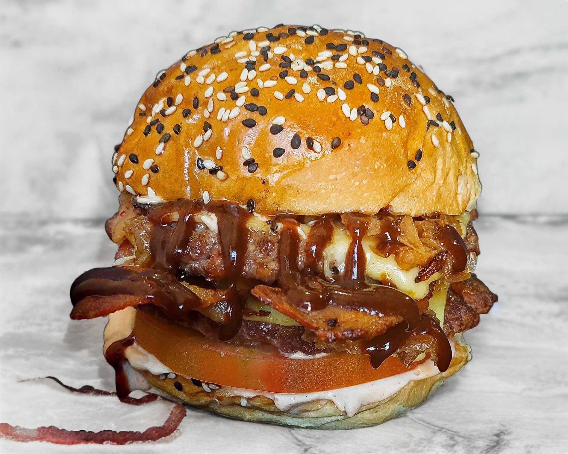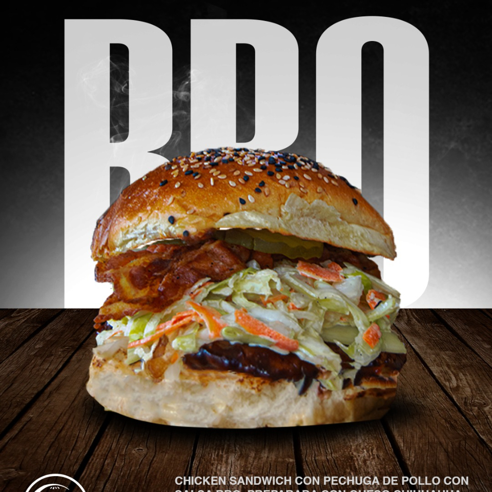 Deliciosa hamburguesa con pan Brioche, doble carnita TOP-SIRLOIN, crujiente tocino, queso Chihuahua, cebollita caramelizada y tomate, todo bañado en nuestra riquísima sweet BBQ de chile pasado y nuestro aderezo de la casa.