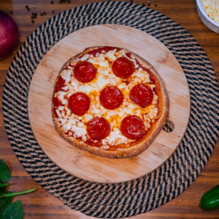 Clásica pizza de peperoni, base con salsa de la casa y queso menonita.