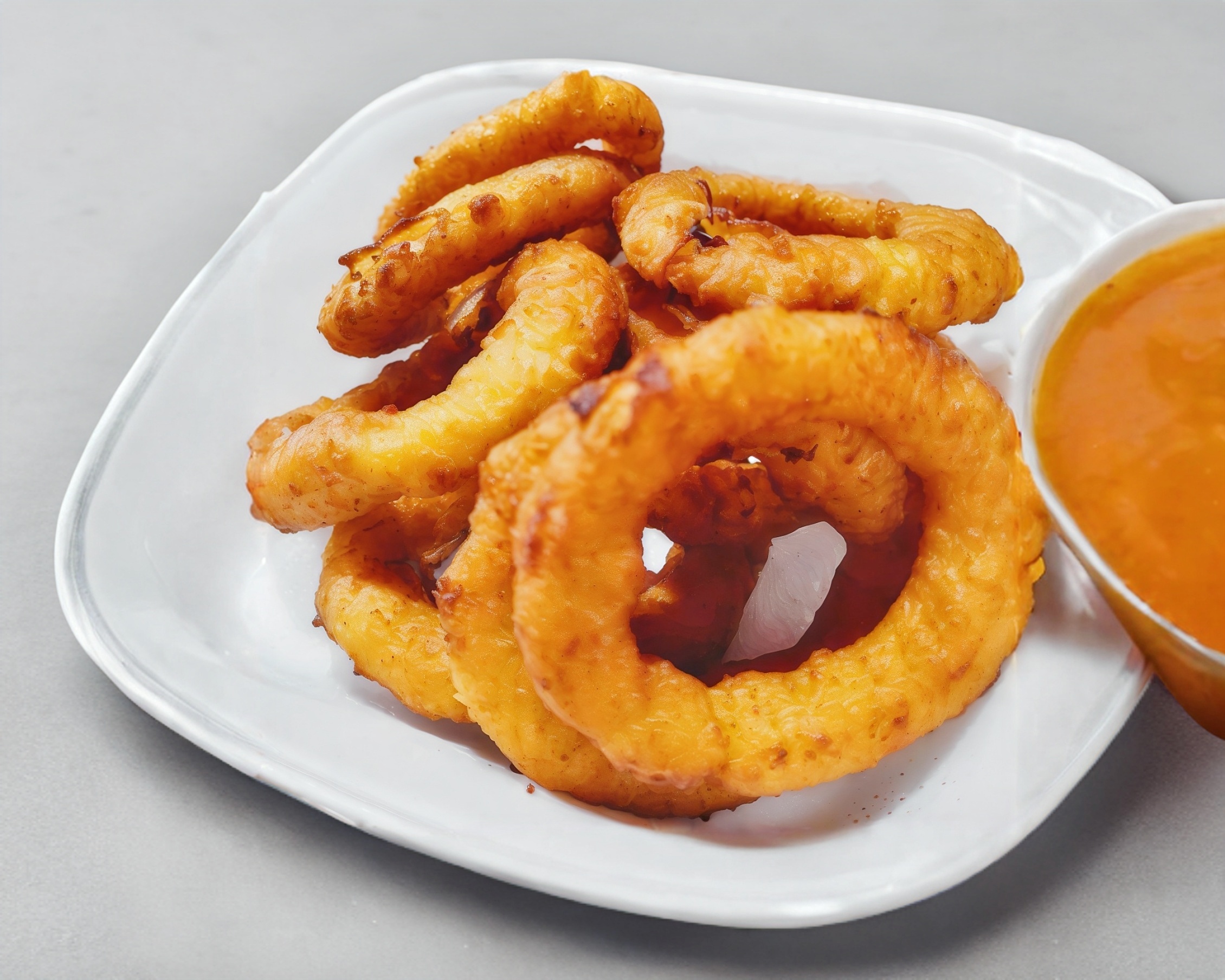 Salchicha enredada con tocino, cebolla guisada, cebolla cruda, tomate, mayonesa, mostaza y cátsup.