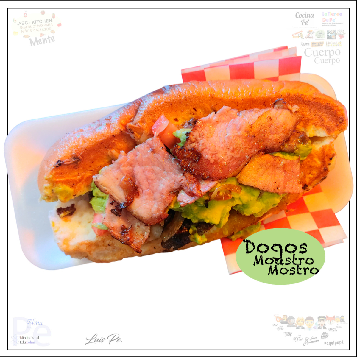 100% Sirloin, Dogo a la plancha con vaporera en aderezo de la casa, pan artesanal jumbo, salchicha de pavo, carne molida 100% sirloin, cebolla guisada, tomate y guacamole, envuelto en papel alimenticio.