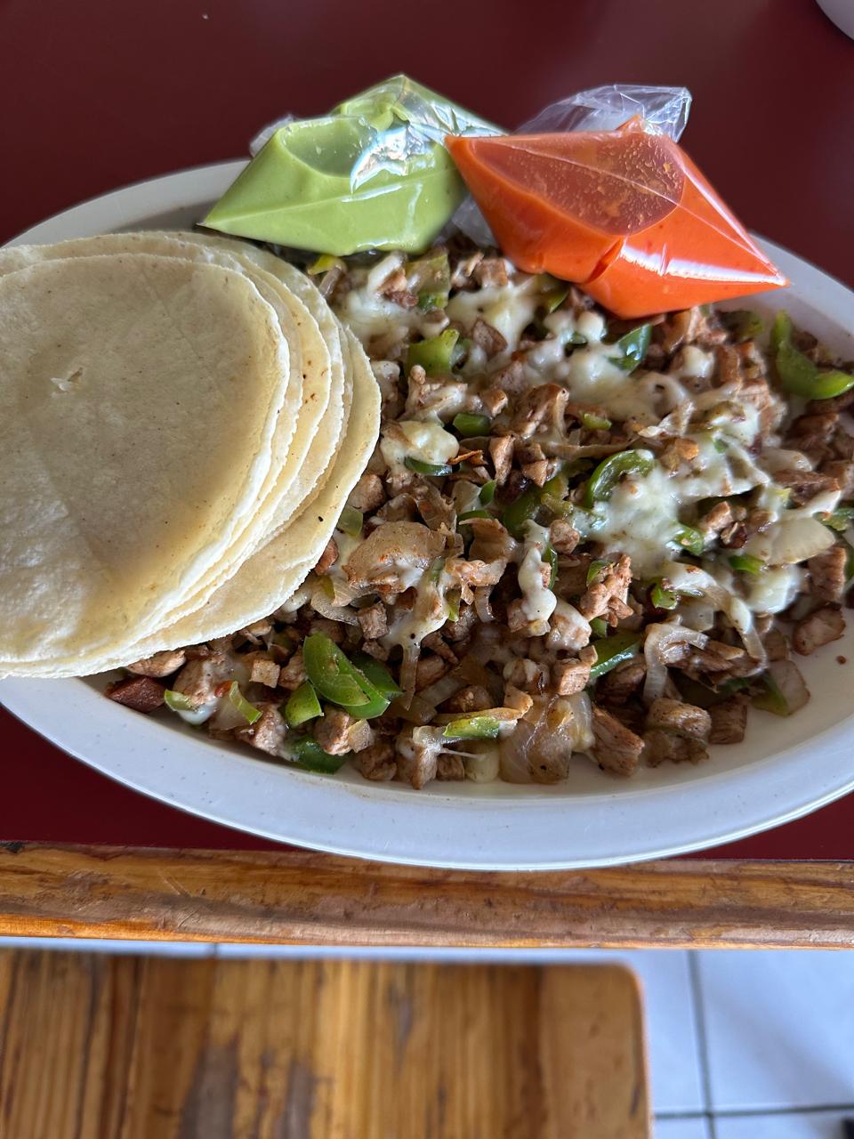 Incluye tortillas, salsas y verdura