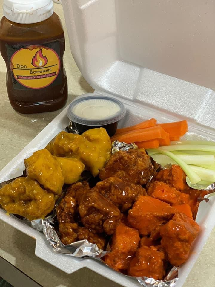 1 kg de boneless, acompañados de zanahoria, apio y ranch.