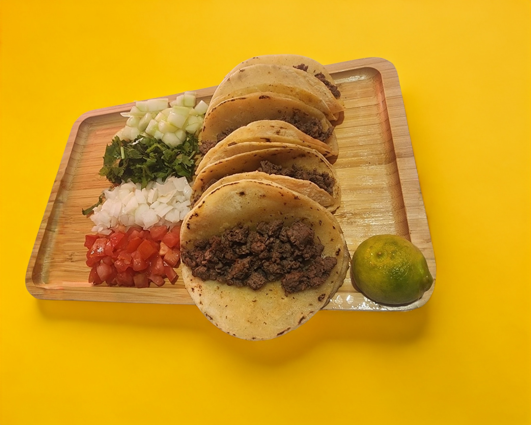 Cebolla, tomate, cilantro, limones, cebolla asada y toreado.