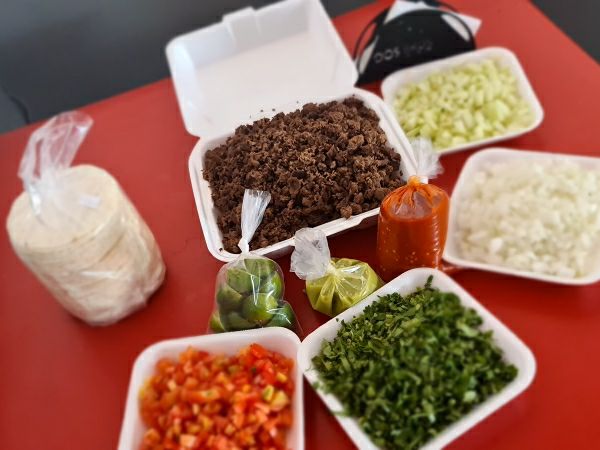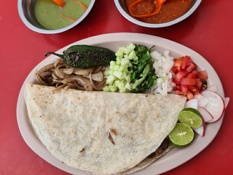 Cebolla, cilantro, tomate, pepino, limones y asadero.