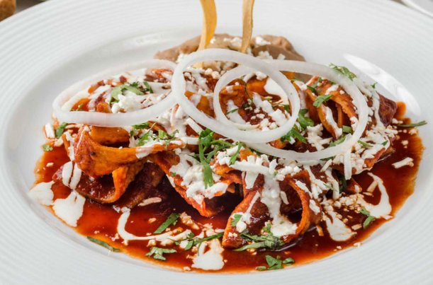 Elige entre rojos o verdes con cilantro, cebolla morada, crema y huevo