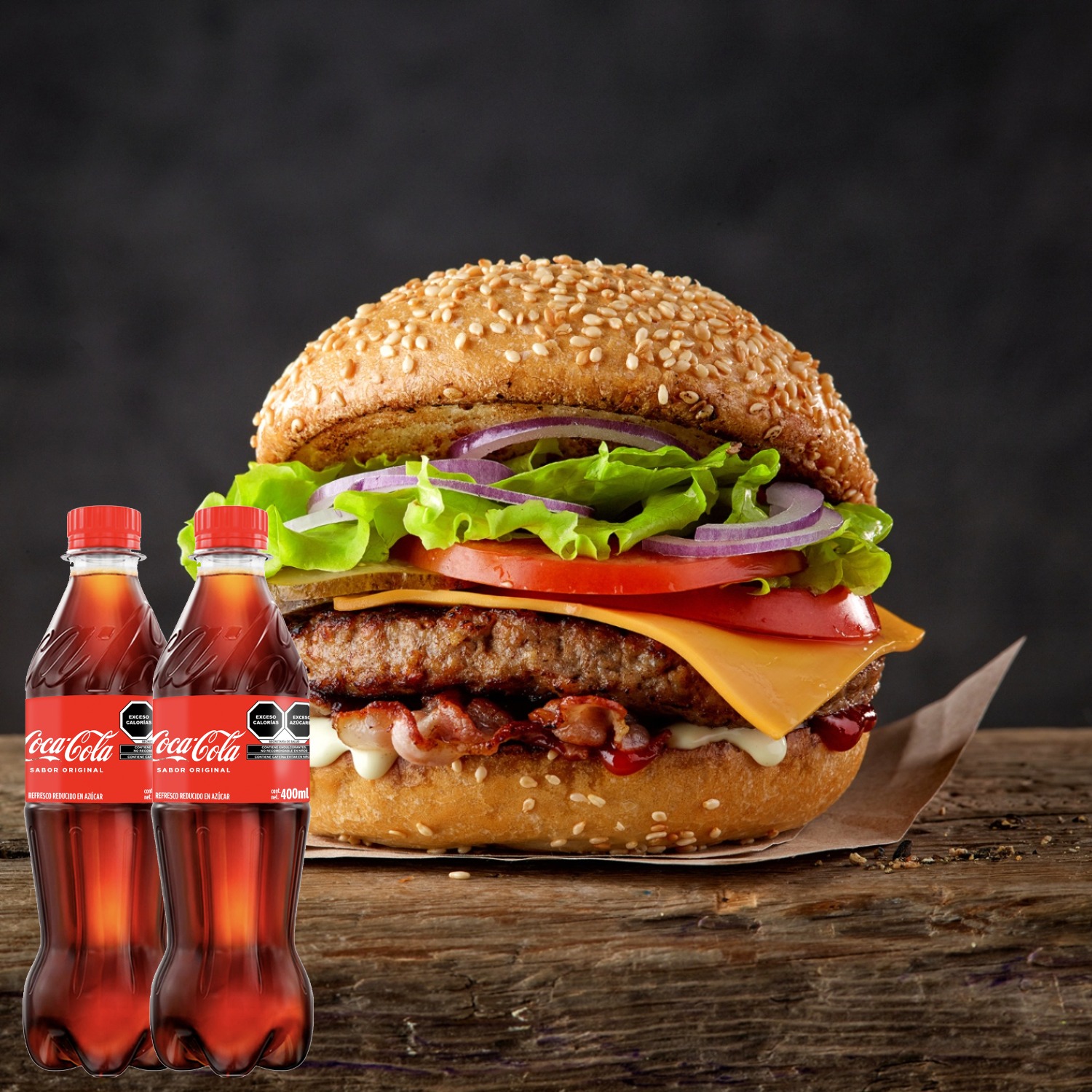 2 hamburguesas dobles + 2 coca cola 355 pet