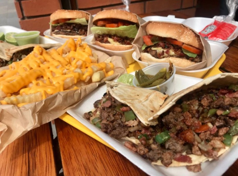 Doble carne, queso, lechuga tomate, aguacate tripitas y tocino.